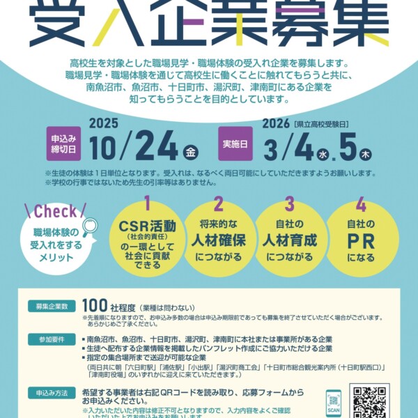\南魚沼市、魚沼市、十日町市、湯沢町、津南町の企業様へ📣/ 🔥高校生職場体験の受入企業を募集しま...